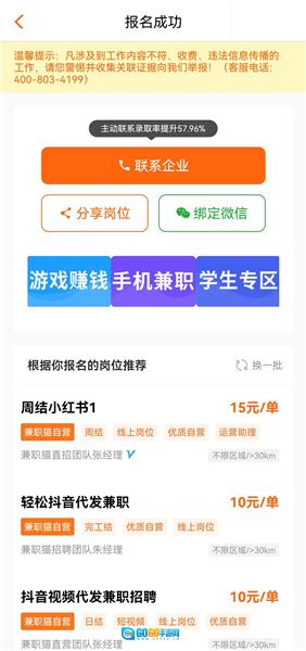3、这样就报名成功啦,成功报名后,主动联系企业或者分享岗位,能让录取效率更高哦!