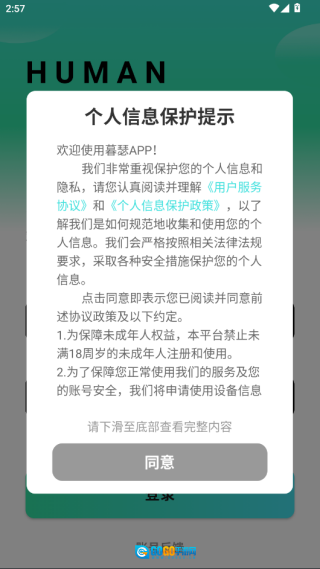 1在开始使用前,你必须先同意对应的用户服务协议以及个人信息保护政策。
