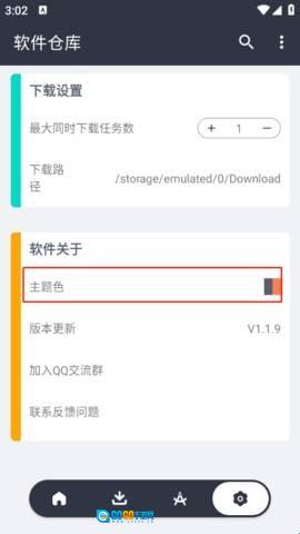 1. 开启软仓软件库(免费版)App,轻点“主题颜色”。