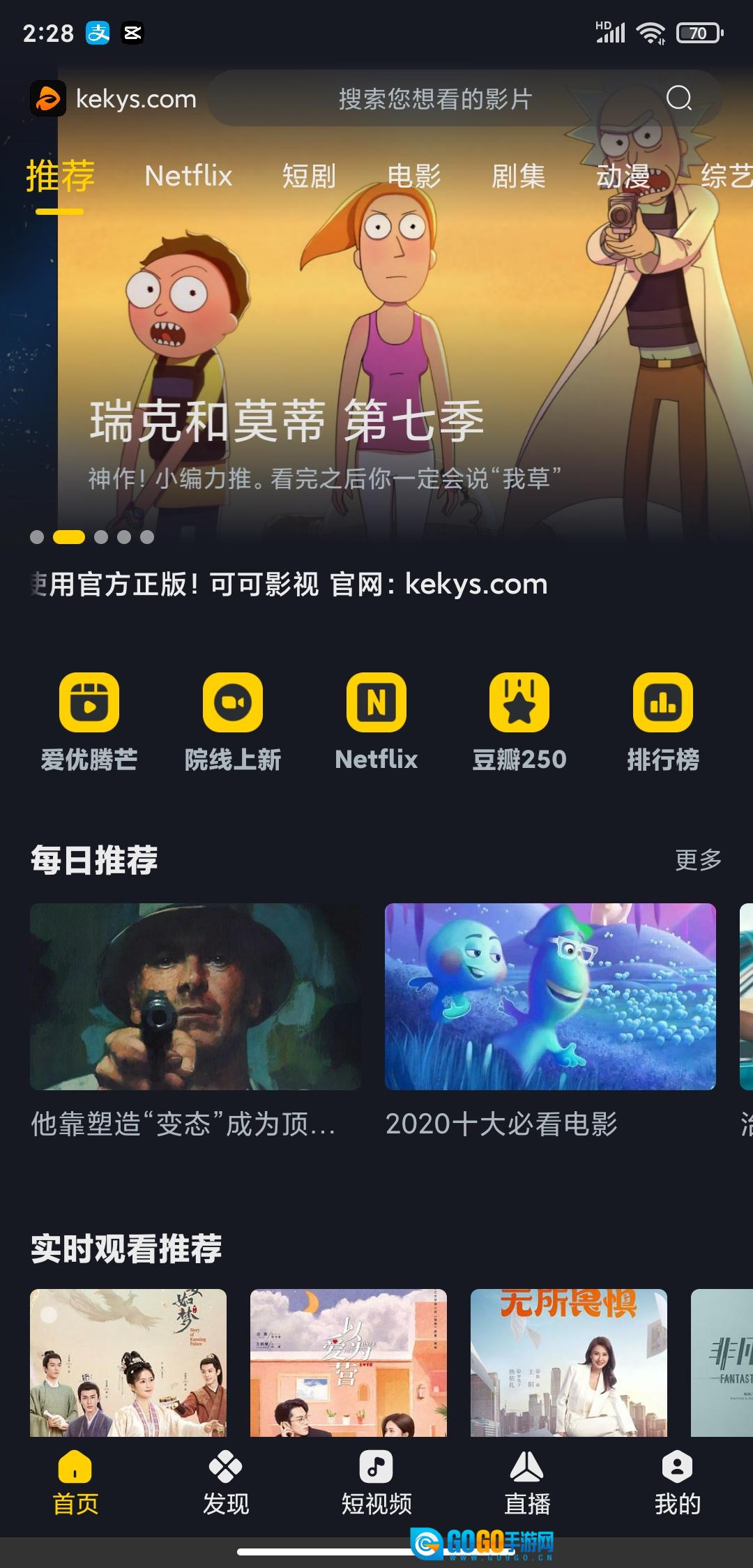 1. 在本网站点击可可影视纯净版,完成安装后开启该应用。