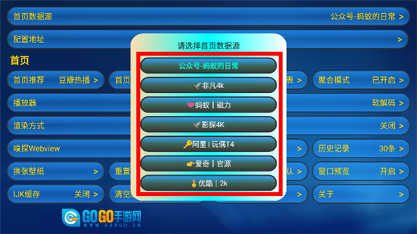 3、数据源较为丰富,大家不妨逐步尝试。要是遇到某些电视无法播放的情况,也能在此处更换数据源。