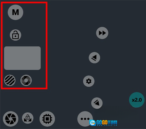 4. 紧接着对感光度、快门速度以及曝光补偿进行调整,初始界面如下图所示,点击“M”便能进入参数调节界面。