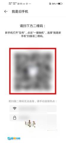 7、这时,旧手机的屏幕上会显示出一个二维码。