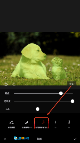 3. 当然,你还能够利用画笔手动选取需要抠出的区域,以此提升准确度。