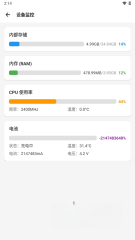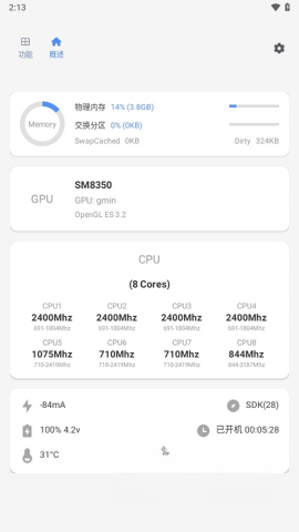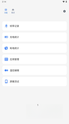 安装完成后,用户能够选择多种工作模式。第一种是基础模式,此模式仅提供部分查看功能。在功能模块里,用户能够执行帧率记录、充电与耗电统计、应用管理等操作。至于概览模块,用户可在此查看手机的物理内存、CPU运行状态、手机电量、温度以及开机时长等信息。
