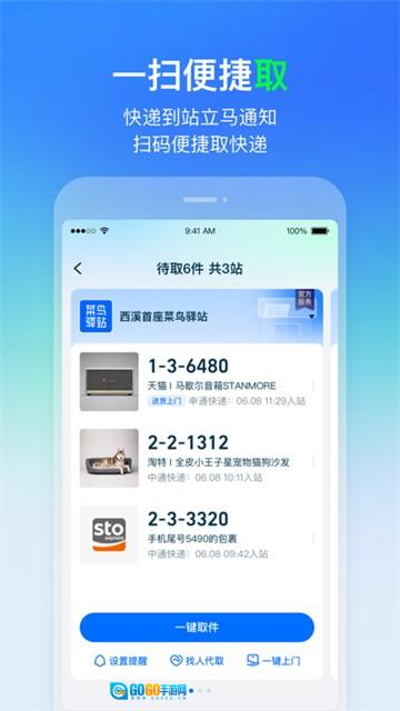 4、一键取件:无需取件码,用菜鸟扫一扫,就能一键取出自提柜及驿站的包裹。