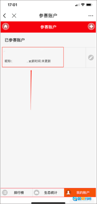 2. 在大赛排行页面,点击右下角“我的账户”。