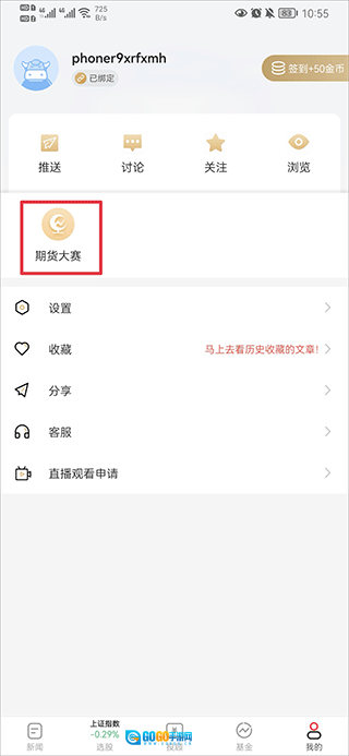 1. 开启和讯财经,于“我的”界面里点击期货大赛