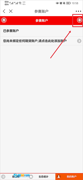 4、完成注册后,返回至我的账户界面,接着点击右上角的添加保证金账户选项。