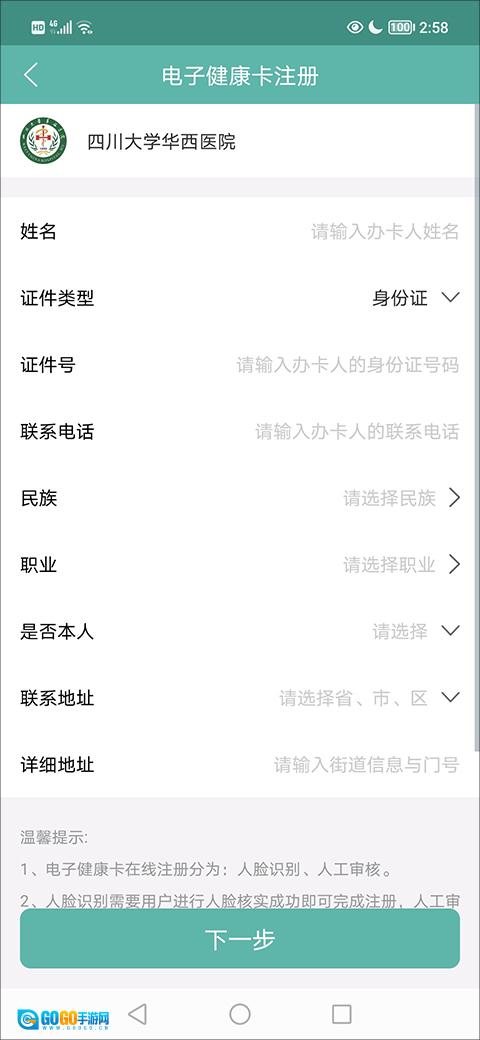 5、根据自身需求填写信息,接着点击“下一步”,随后依照要求完成后续操作,就能在就诊卡列表中查看到就诊卡信息。