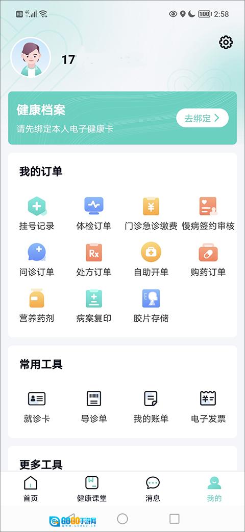 1. 第一步,打开华医通的最新版本,于常用工具里找寻并点击“就诊卡”按钮。