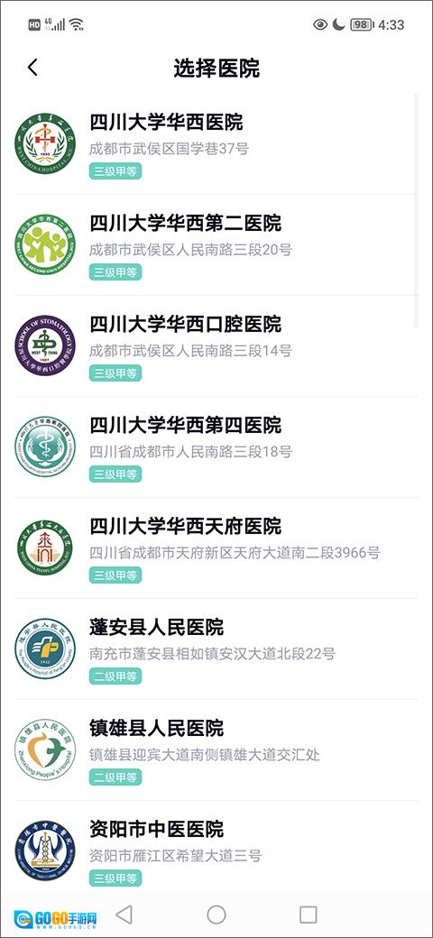 3、紧接着,在医院选择列表里找到自己打算前往的医院。