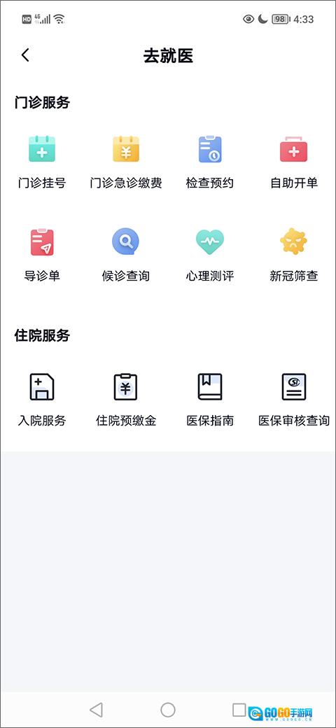 1. 第一步,打开软件,在首页寻觅到“去就医”按键并点击。