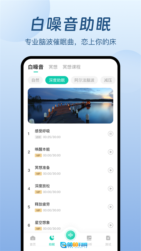 月亮不睡我也不睡,化身秃头小宝贝。眼睛疲惫不堪,大脑却异常活跃,在这静谧的夜晚,连心跳声都清晰可闻,偏偏就是难以入眠。别担心,快来试试萤火虫睡眠这款软件吧!它致力于提升你的睡眠质量,特地邀请专业录音团队,精心采集了数十种自然界白噪音,像百灵鸟啼鸣、池塘里的蛙声、倾盆大雨声、木屋中烤火的声音等等,再搭配上舒缓的轻音乐,助你缓解疲劳,放松身心。不仅如此,这款软件还具备睡眠监测功能,能够分析你的睡眠数据,让你对自己的睡眠方式有更深入的了解,进而养成良好的睡眠习惯。