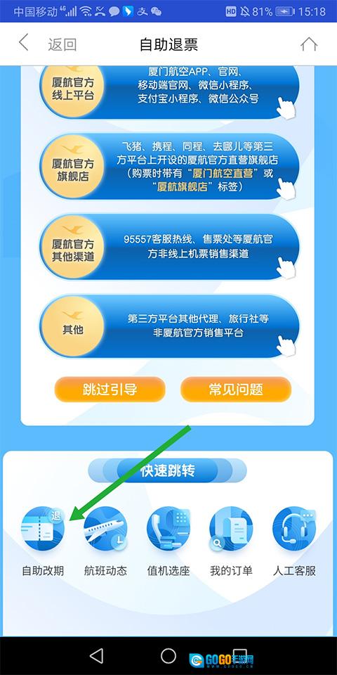 5、若符合以下任何一种情况,请拨打厦航客服95557,通过人工服务办理: