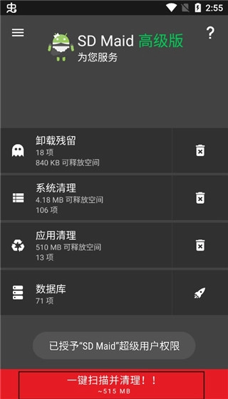 1. 开启SD Maid清理器的最新版本,进行扫描。