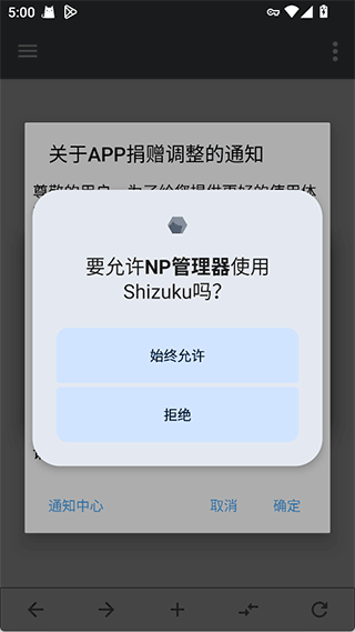 另外需要说明的是,你需在手机中安装并激活Shizuku 。完成后,打开NP管理器,此时Shizuku便能授权NP管理器,如此一来,NP管理器就能获取手机系统级操作权限。获取权限后,就可以访问普通用户无法触及的系统文件。只要能够访问系统文件,就能够对其执行像安装包签名、去除广告、去除会员限制、更改游戏数据等操作。