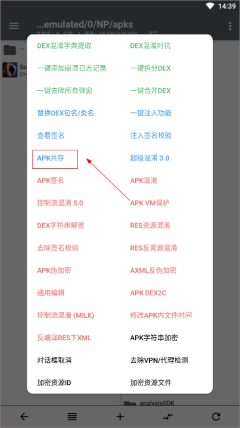 4、此步骤的图文与上文一致,再次点击“APK共存”。