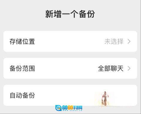 2. 点击新增备份,用户不仅能够自主选择存储位置,还可自由划定备份范围,全方位守护聊天记录的安全与私密。
