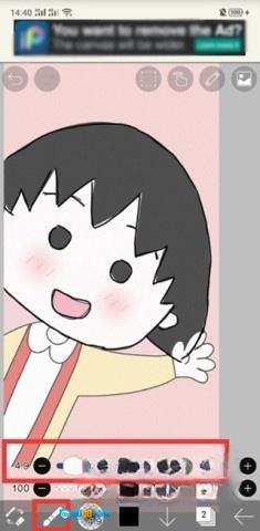 4. 随后拿起软蘸笔,让笔端随心舞动,顺着小丸子的形状,细细地描绘出她的轮廓,勾勒出人物的模样。