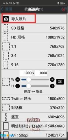 2. 在新建画布的相关选项里,您能够挑选导入照片这一操作,从而为后续的创作打下基础。