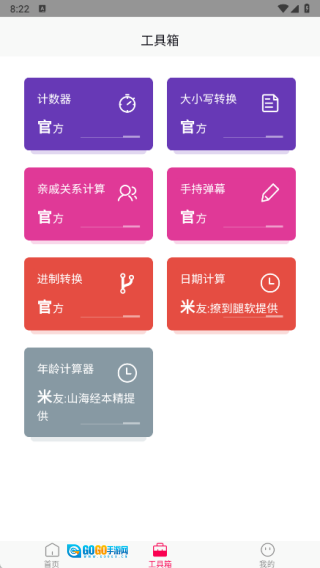 3、工具箱里具备计数器、大小写转换、亲戚关系计算、手持弹幕、进制转换、日期计算以及年龄计算器等功能。