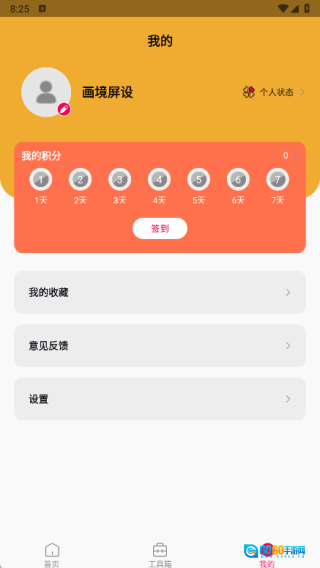 4、在“我的”页面,你能够通过签到获取积分,并且能随时收藏信息。