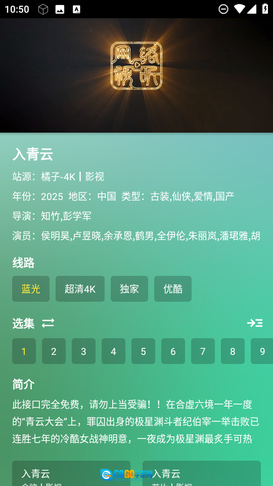 3、随后随意挑选一部喜爱的影视作品进行播放,在此,小编以《入青云》为例。