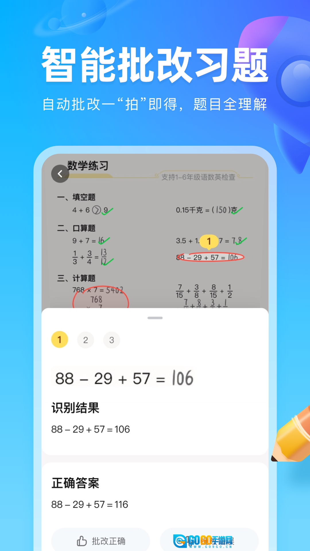 3、题目拍照,瞬间批改,智能帮你判断对错。