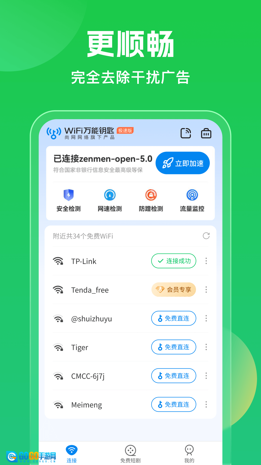 2. 自动识别并连接信号稳定的WiFi,无需手动输入密码。