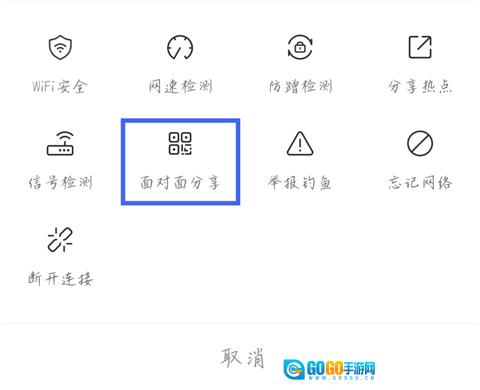 2. 点击【面对面分享】选项。