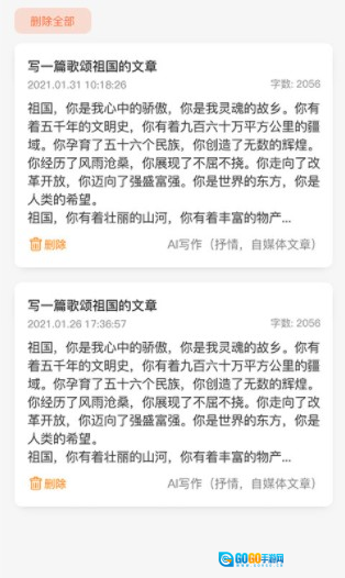 1仅需输入关键词,软件便会依据该关键词生成相应文章。