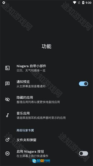 3、接着在Niagara设置里,我们还能进行功能设定,例如Niagara自带的一些小部件以及通知预览等。