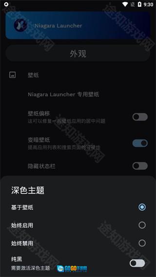 5、此外,在壁纸设置中,我们还能够对其进行偏移、变暗、设为纯黑等操作。