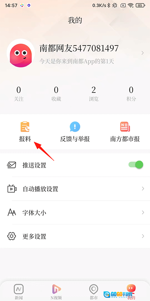 5、我的板块:可在此查看个人关注内容、收藏内容以及积分等信息,同时还能点击进行报料操作。