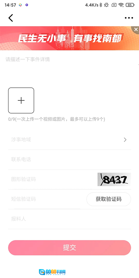 6、于输入框内填写报料内容,上传图片等相关信息,点击提交,即可完成报料。