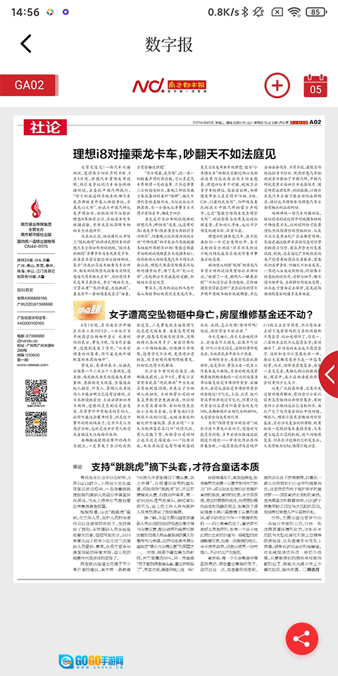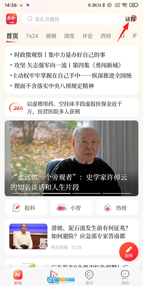 2、点击右上角的「读报」按钮,即可阅读最新的数字报。