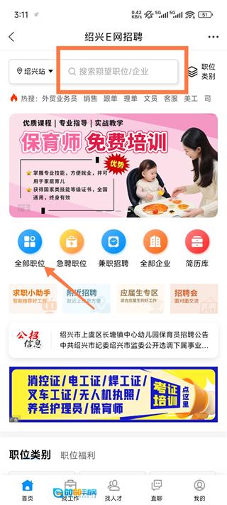 2、在此处,你能够搜索心仪的职位/企业,也可以点击“全部职位”来查看。