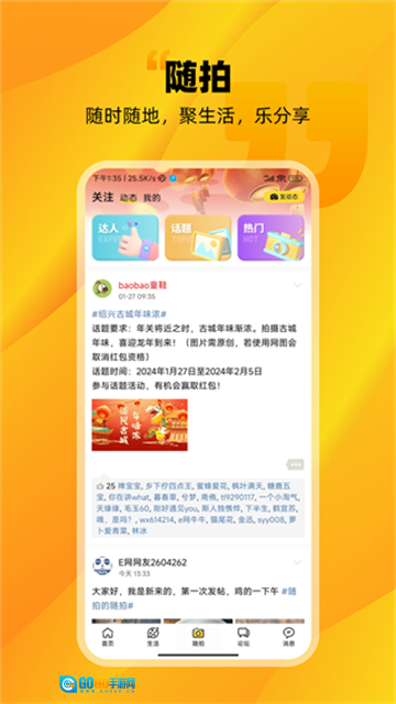 绍兴E网App,这是一款专注于绍兴地区的本地生活消费社交平台软件。借助这款软件,你能实时知晓绍兴发生的所有大小事件,并且这些事件会以图文并茂的形式呈现,助力大家发现绍兴的美与变化。