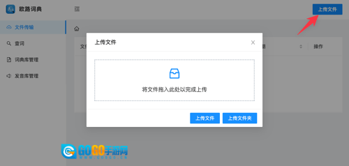 3、在已打开的网页里,点击上传文件按钮,把保存在电脑中的词典文件传输至手机本地存储的eudb_en目录中。