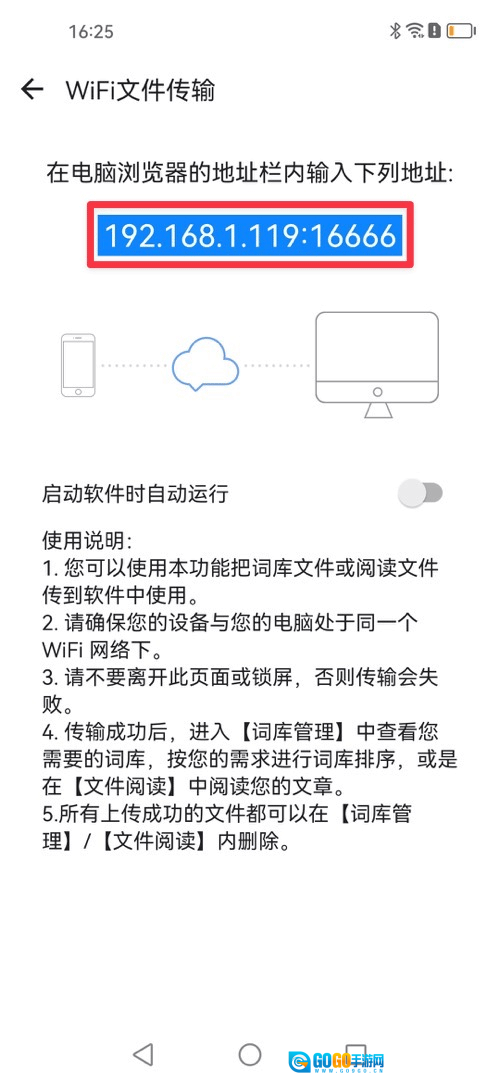 通过WiFi文件传输功能,把词典文件导入到软件中: