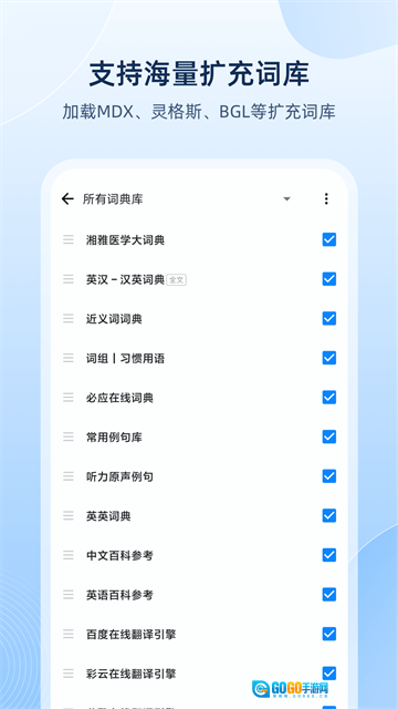 词库扩充:借助网络上各语种的扩充词库,对Mdict、灵格斯、Babylon等多种词典格式予以支持,覆盖医学、经济、工程、计算机等超十余个领域。