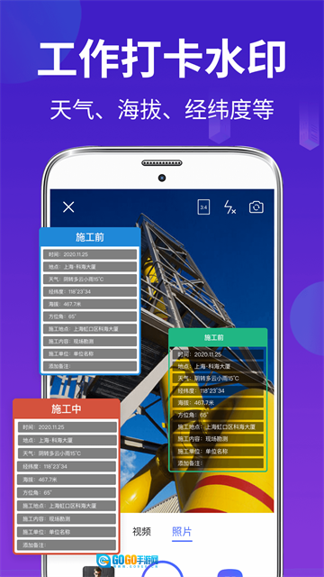 水印分类丰富,涵盖工程打卡水印、工作打卡水印、时间水印、地点水印、日期时间水印、心情水印以及生活常用水印等。它不仅能满足工作方面的需求,更是一款助力您记录美好生活的水印工具。