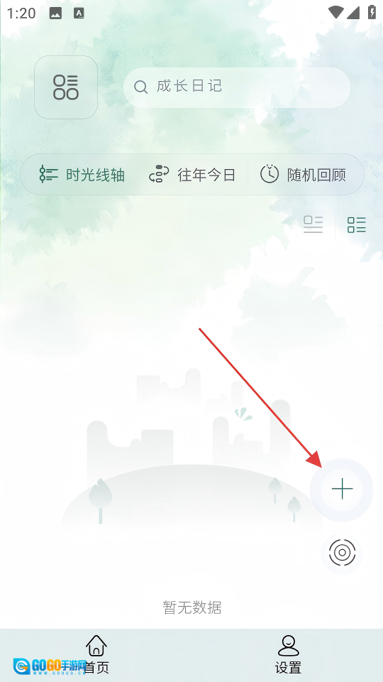 2. 在成长日记界面,点击右下角的【+】按键,即可进入成长日记新建界面。