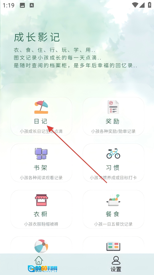 1. 打开成长影记,点击【日记】这一选项,从而进入成长日记页面。