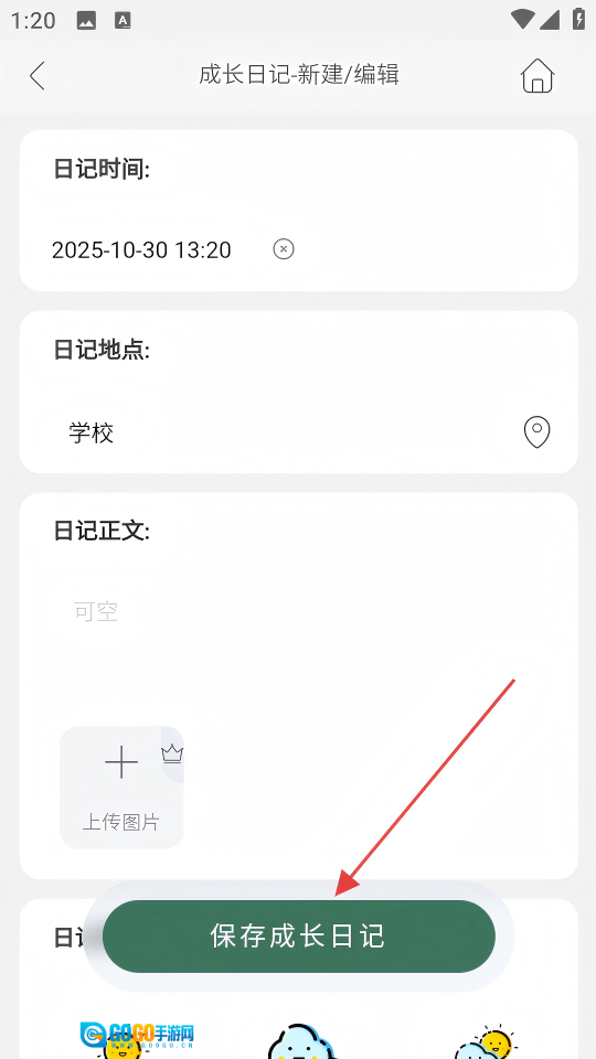 3、于成长日记页面,填好日记相关信息后,点击【保存成长日记】按钮,即可完成日记的保存。