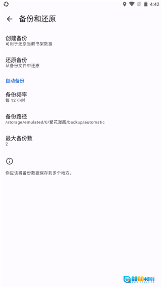 3、在此处,用户既能够创建备份,还能够对备份频率进行设置。
