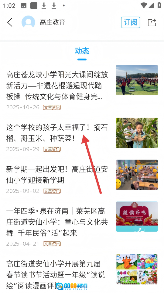 3、于高庄教育动态页面,点击《这个学校的孩子太幸福了!...》这篇文章,就能查看详细内容。