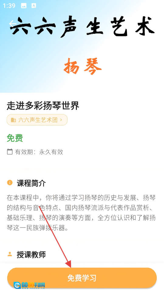 2. 在课程页面中,寻找到【走进多彩扬琴世界】这一课程,然后点击进入该课程的详情页面。