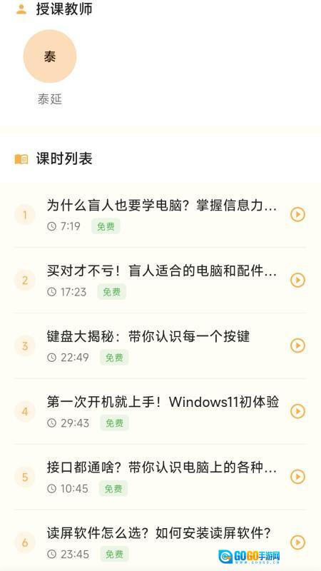 3、清晰呈现课时列表,其中涵盖免费课程资源以及授课教师信息。如此一来,用户能够直观地知晓课程安排,依据自身需求挑选合适的课时进行学习。